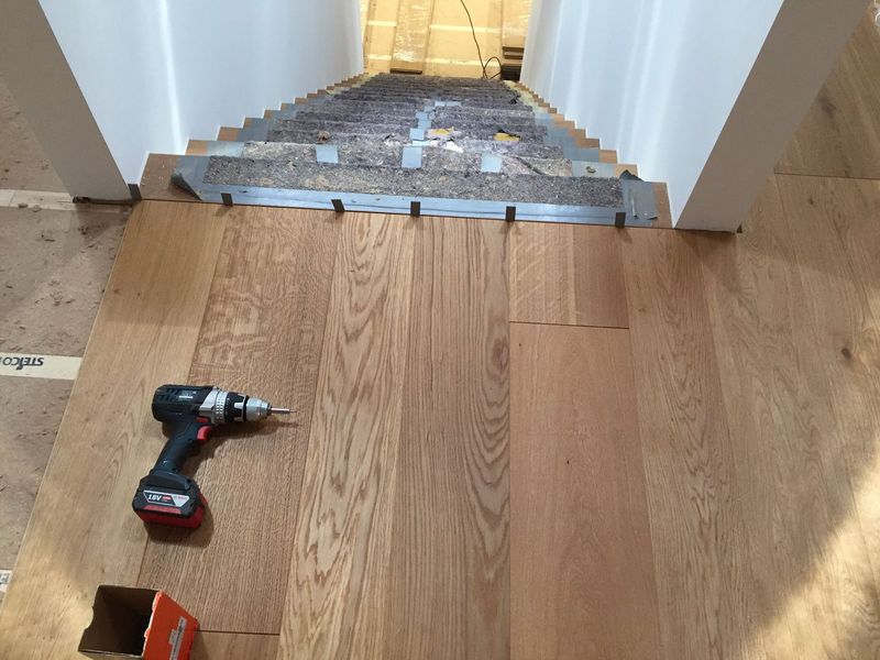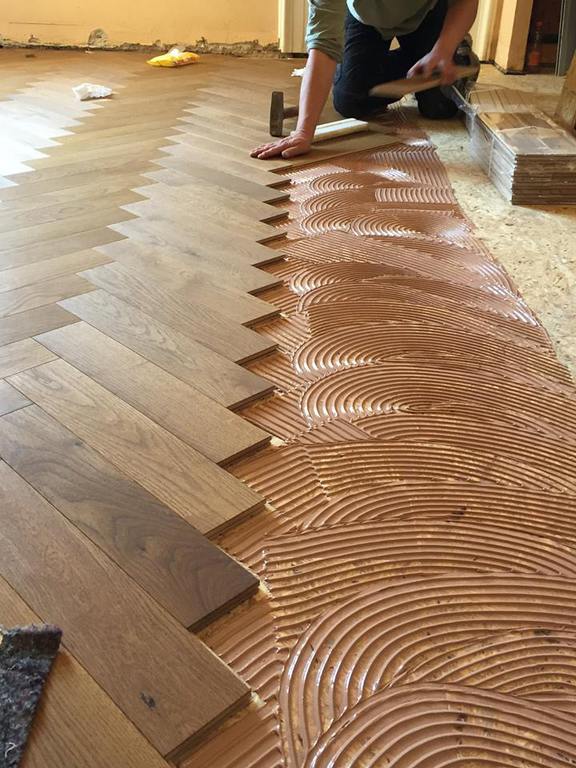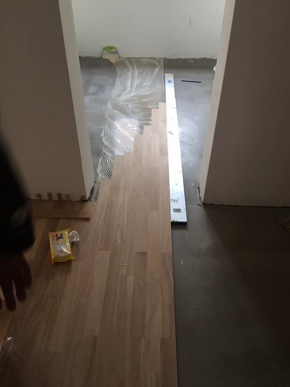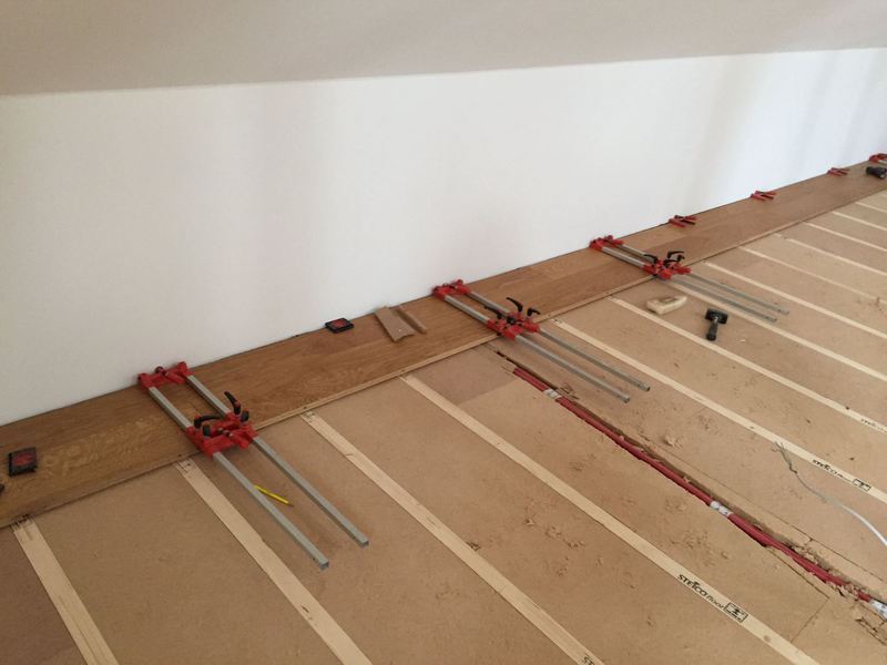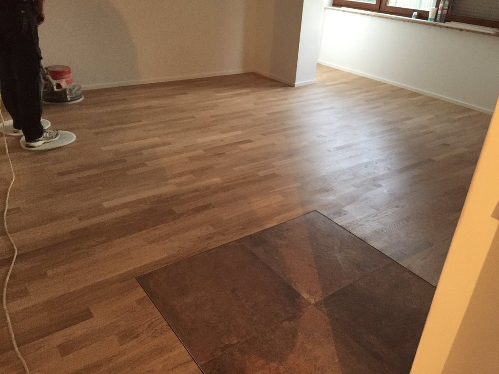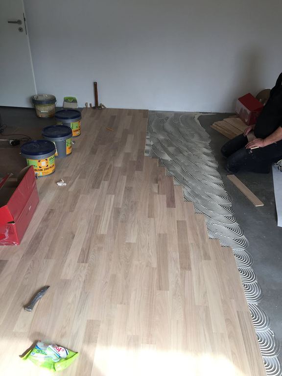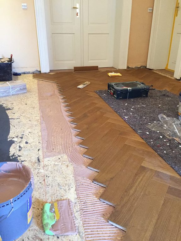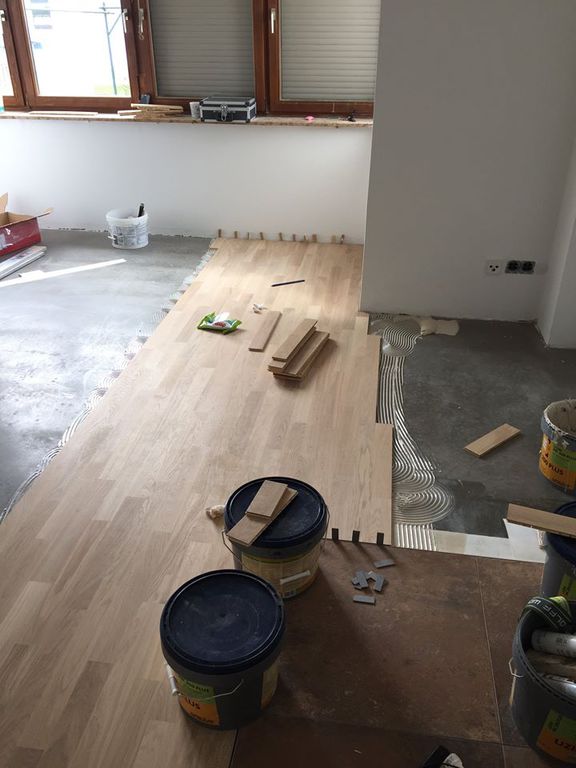 Nach dem genauen Anspachteln der Höhe, wurde von uns eine Massivdiele in