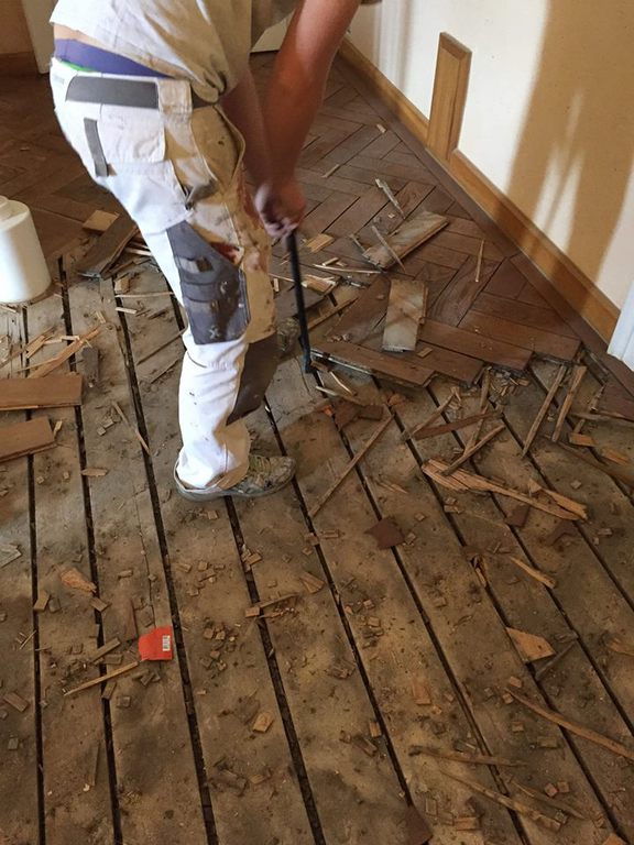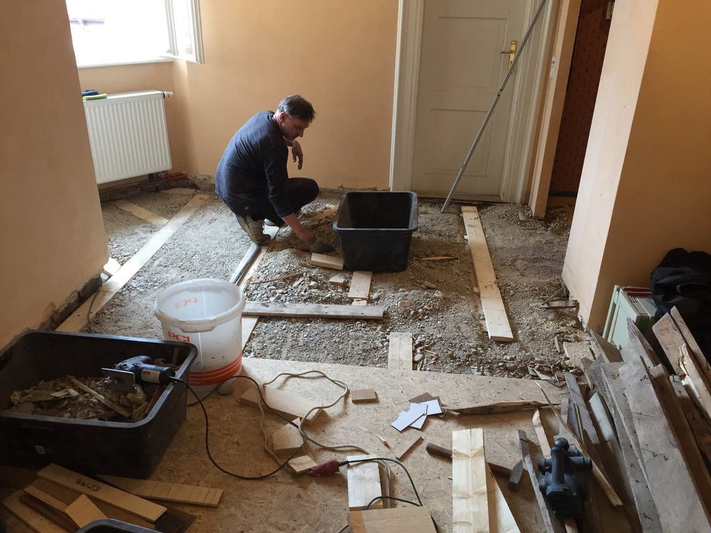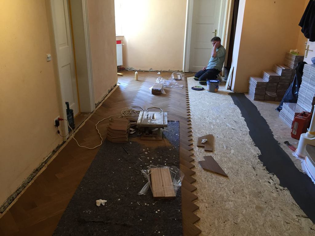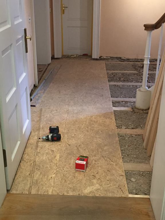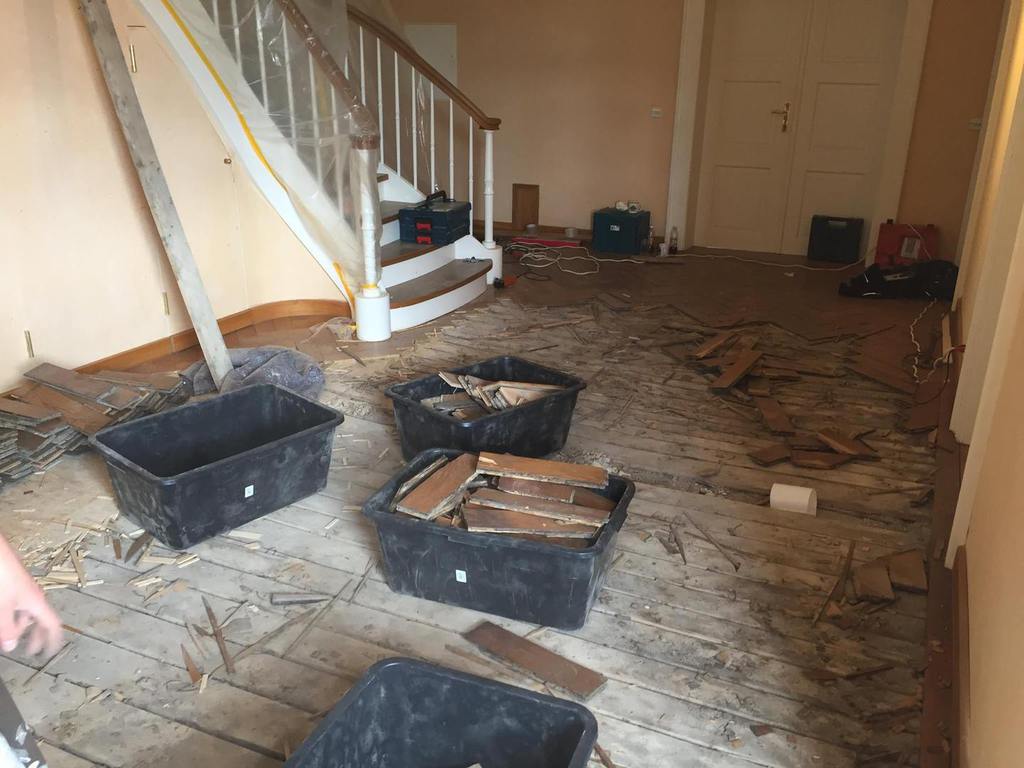 Nachdem das alte Parkett samt Fehlboden demontiert war, haben wir die