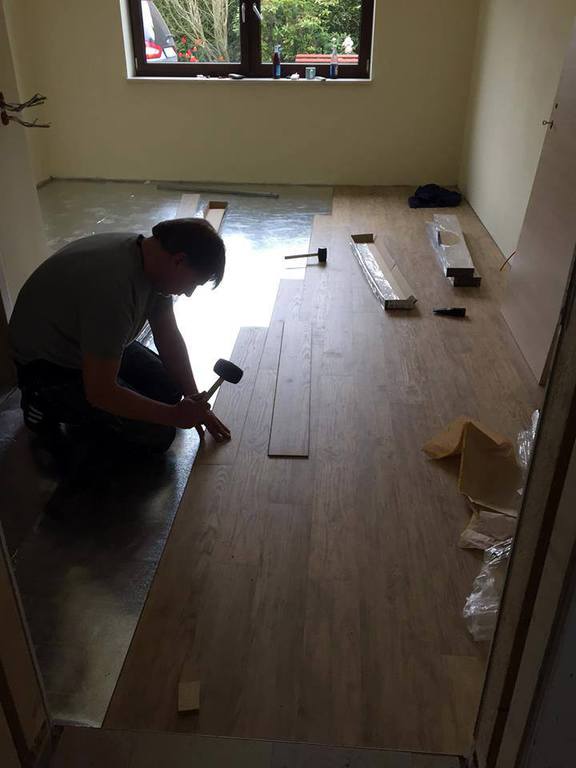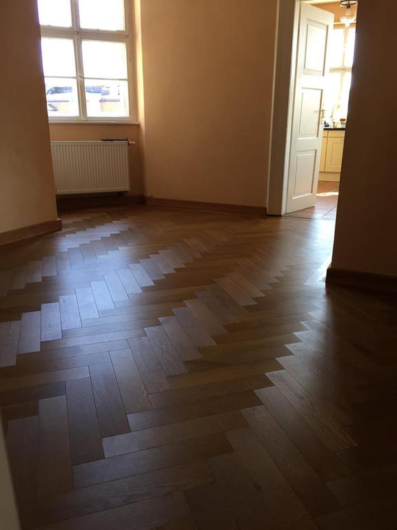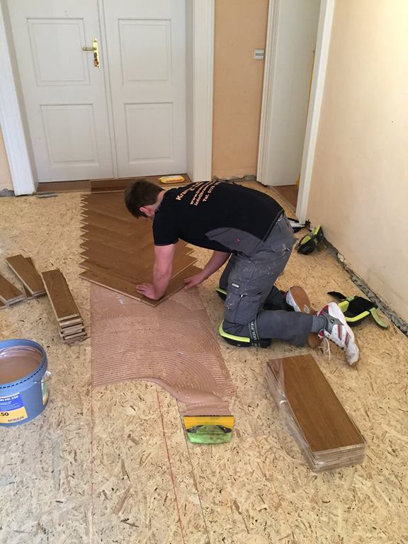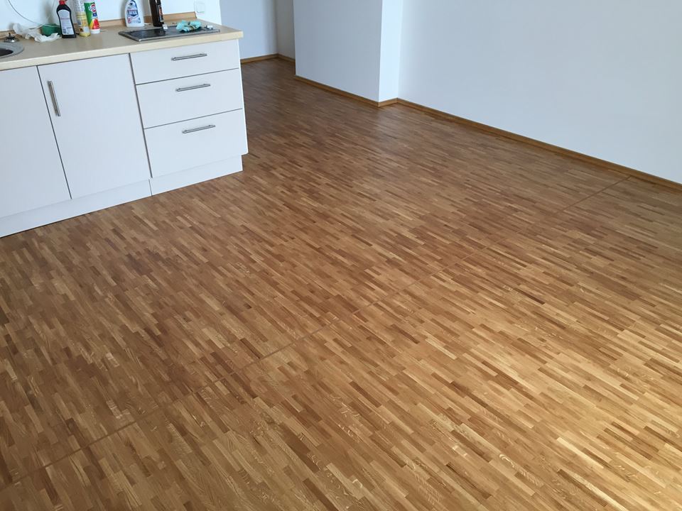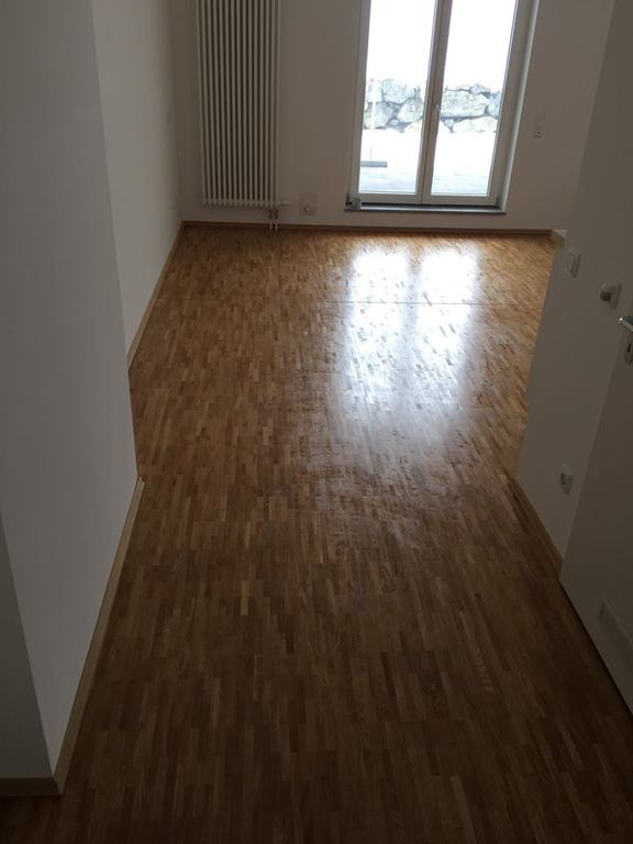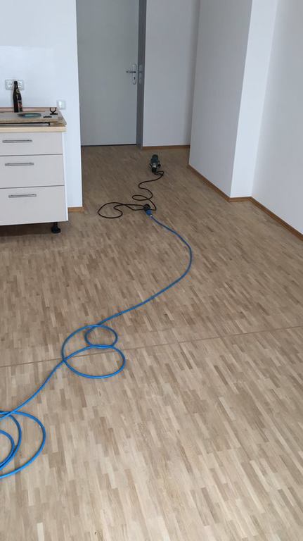 Unser Team hat in sechs Komfortapartments einen Designbelag verlegt und weiße Sockelleisten (Berliner - Profil) montiert.