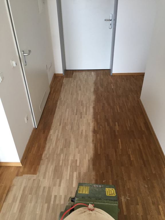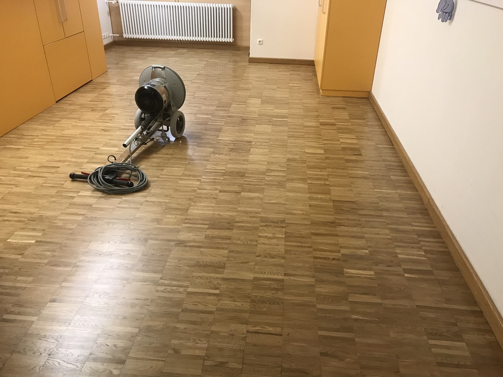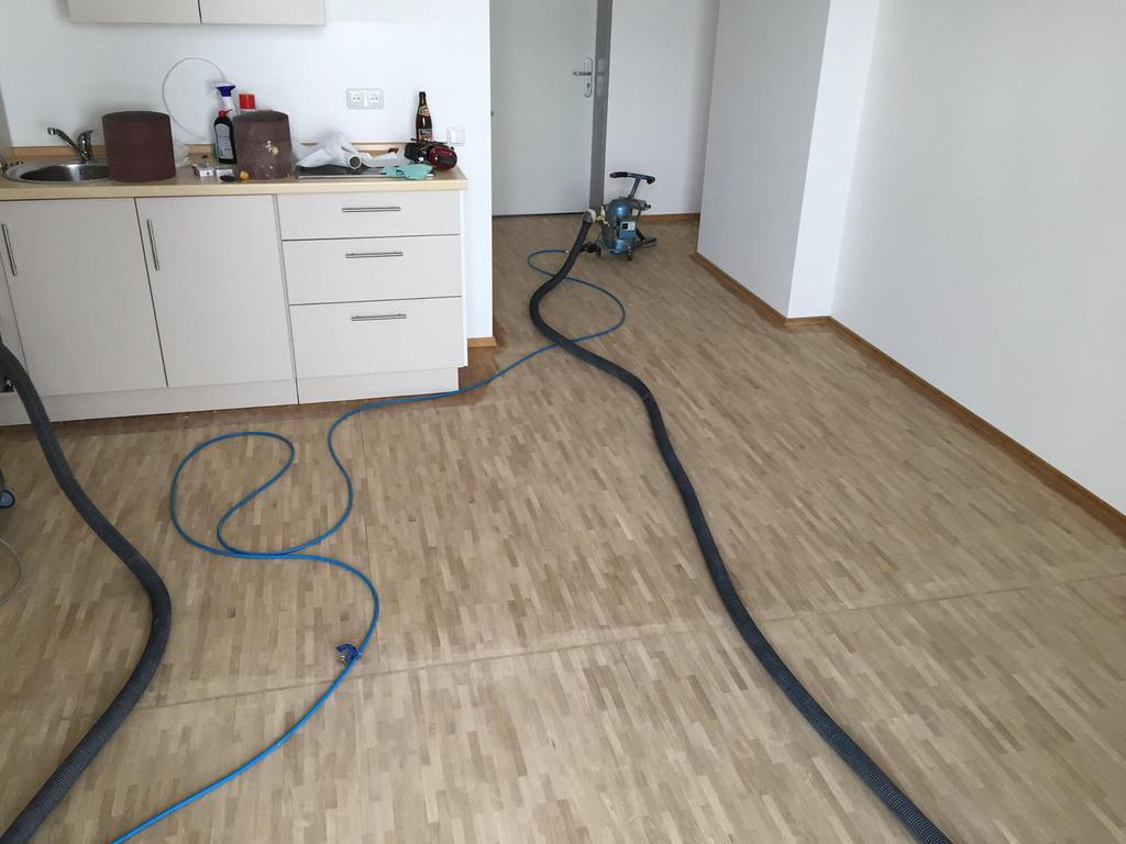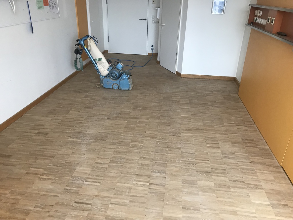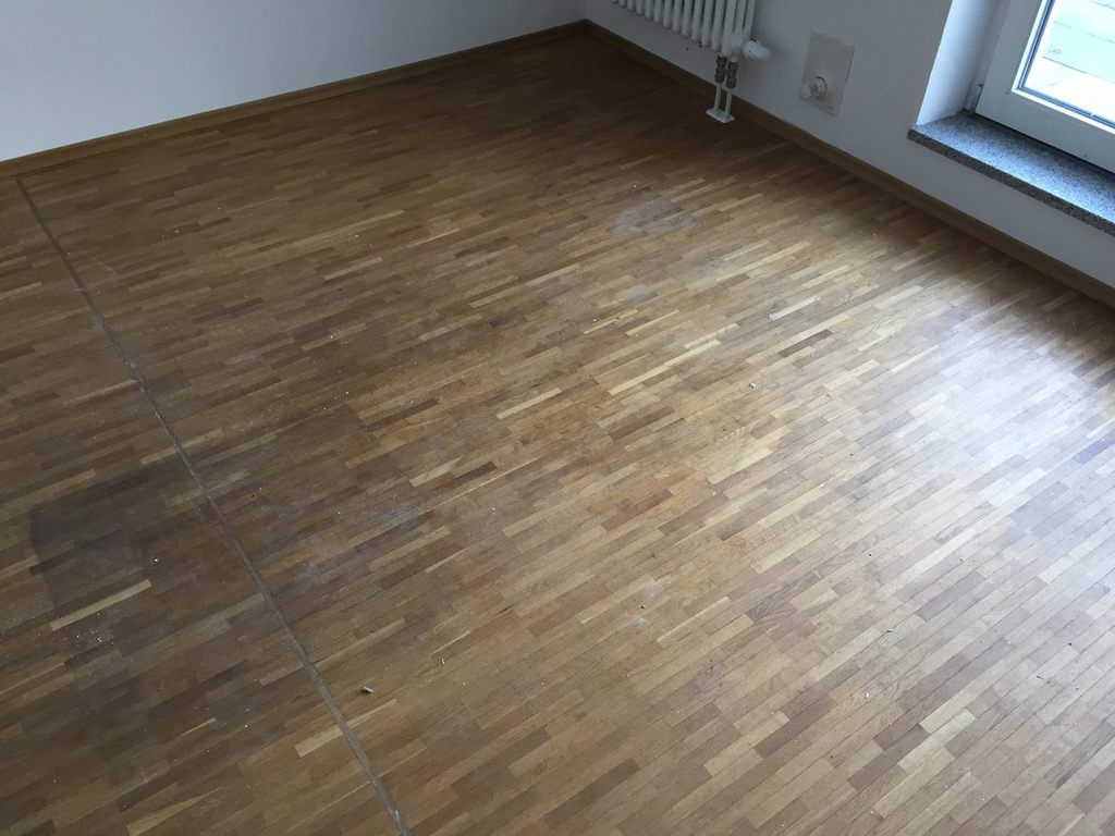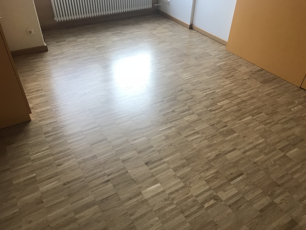 Hier wurde in mehreren Bewohner - Zimmern das Mosaikparkett geschliffen und neu geölt