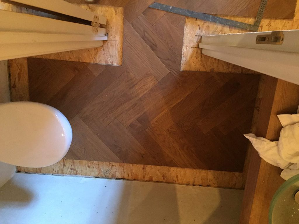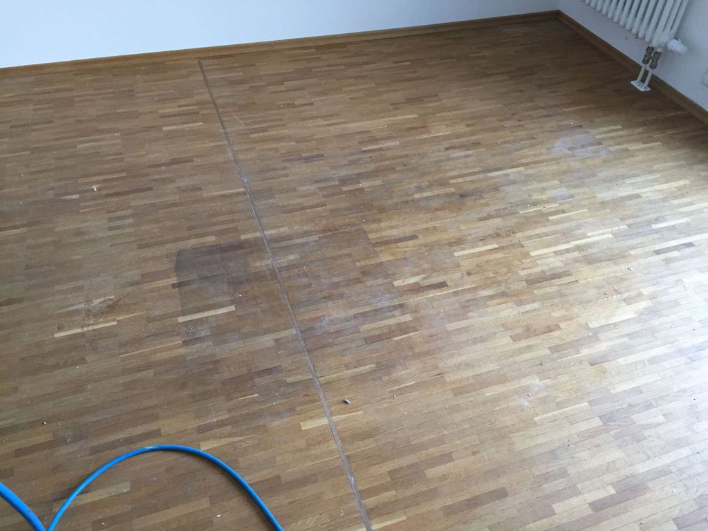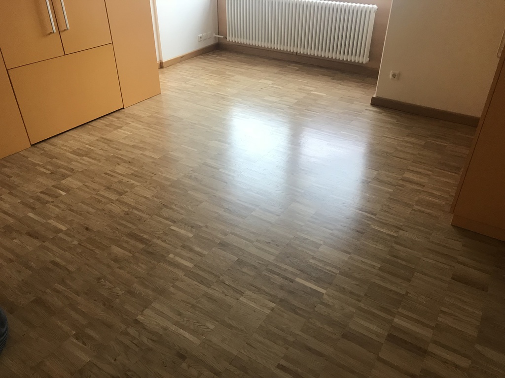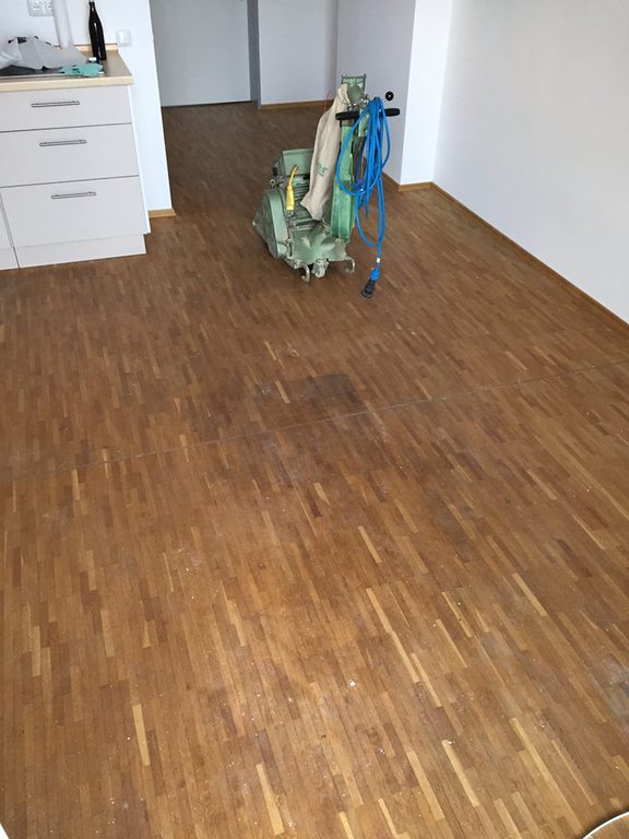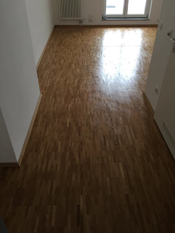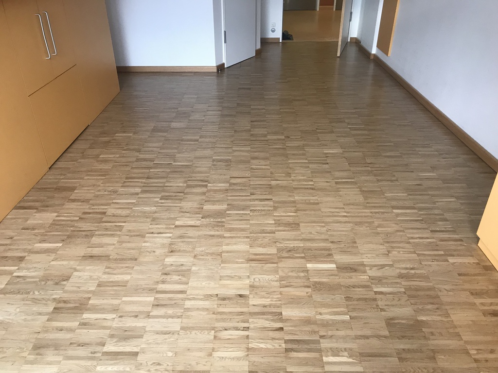 Hier wurde in mehreren Bewohner - Zimmern das Mosaikparkett geschliffen und neu geölt