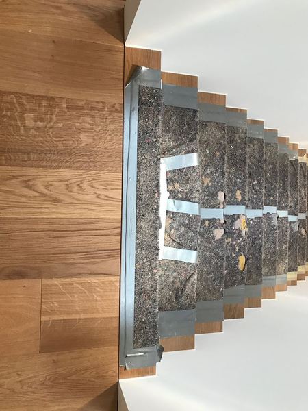 Massive - Eiche Landhausdiele in fallenden Längen und drei verschiedene Breiten, die wir auf eine Riegelkonstruktion geschraubt haben.